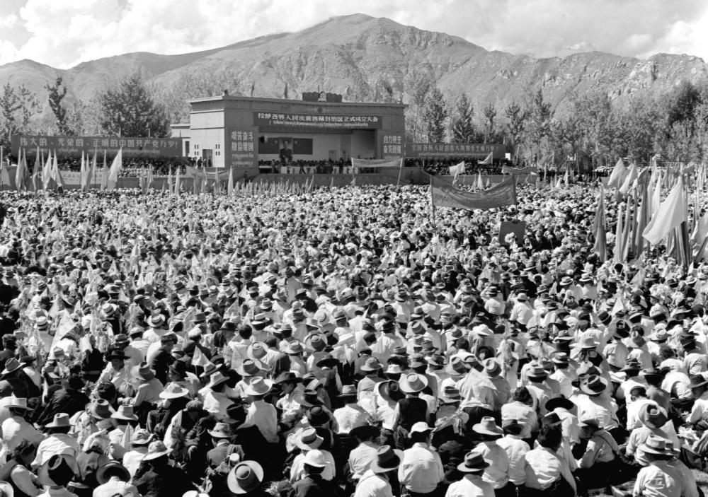 1965年9月9日,西藏自治區首府拉薩市3萬多人集會,熱烈慶祝西藏自治區正式成立。(新華社記者馬競秋攝)