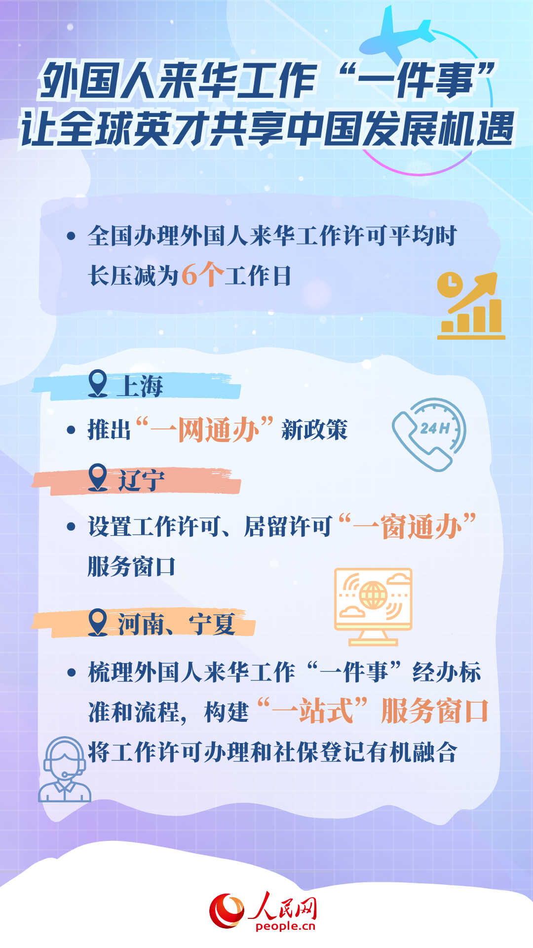 據了解,証卡融合集成后,在實現工作許可“一次申請、不見面審批、全程網辦”的基礎上,全國辦理外國人來華工作許可平均時長壓減為6個工作日。