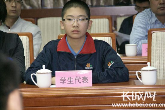 今年正上初一的杨子锐是石家庄市第四十中学1303班的学生,他在座谈会上第一个发言,他用生动的语言结合自己的上网感受痛陈了网络低俗内容对青少年身心带来的危害,同时代表学生群体,发出了“真诚地盼望有一个清洁网络环境”的呼声。