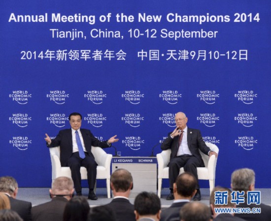 新华网消息 以“推动创新 创造价值”为主题的“世界经济论坛新领军者年会——2014年夏季达沃斯论坛”将于9月10日—12日在天津举行第八届年会。今天下午,国务院总理李克强在天津与出席论坛的企业家代表对话交流,回答他们最关心的问题,特别是针对当前中国经济发展及深化改革做出权威解答。
