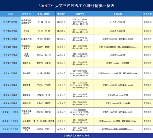 人民网北京11月30日电 据中央纪委监察部网站消息,11月30日下午,中央第五巡视组巡视全国工商联工作动员会召开。至此,在中央第三轮巡视工作中,文化部、环保部、中国科协、全国工商联、中国国际广播电台、南方航空、中国船舶、中国联通、中国海运、华电集团、东风汽车、神华集团、中石化等13个单位均已有中央巡视组进驻。
