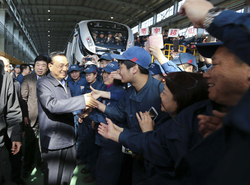 【北车工人举“感谢超级推销员”字板谢总理】10日,北车集团长春轨道客车股份有限公司的装备车间欢声雷动,工人们打出“感谢超级推销员”的字板,争相与正在这里考察的李克强总理握手问好。总理说,中国装备去国际市场上竞争,你们一定确保装备质量,让关键技术入脑入心,把每个步骤和程序精确到位。
