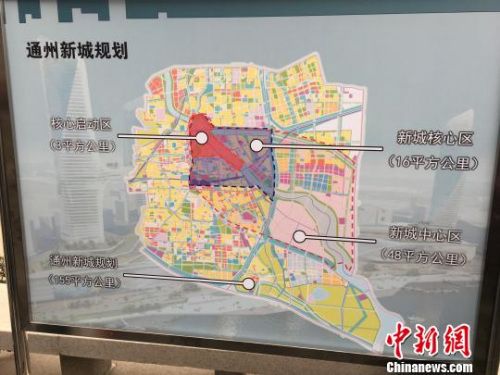 资料图:11月10日,北京市人大代表前往通州视察。目前,通州“行政办公区”已完成棚户区拆迁,“运河核心区”7.16公里的地下环廊已经建成,使得车辆在地下通行不影响地面生活。图为通州新城规划。 曾鼐 摄