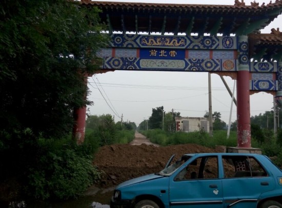 今年7月,中新网记者走访两年多前已拆迁的前北营村。图为原前北营村口。吕春荣 摄