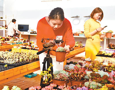 由村官带动的直播销售,为当地的年轻人提供了新的就业选择。目前,仅宿城区耿车镇党员多肉种植大户就有25家,带动周边1000余人从事多肉植物种植与销售。