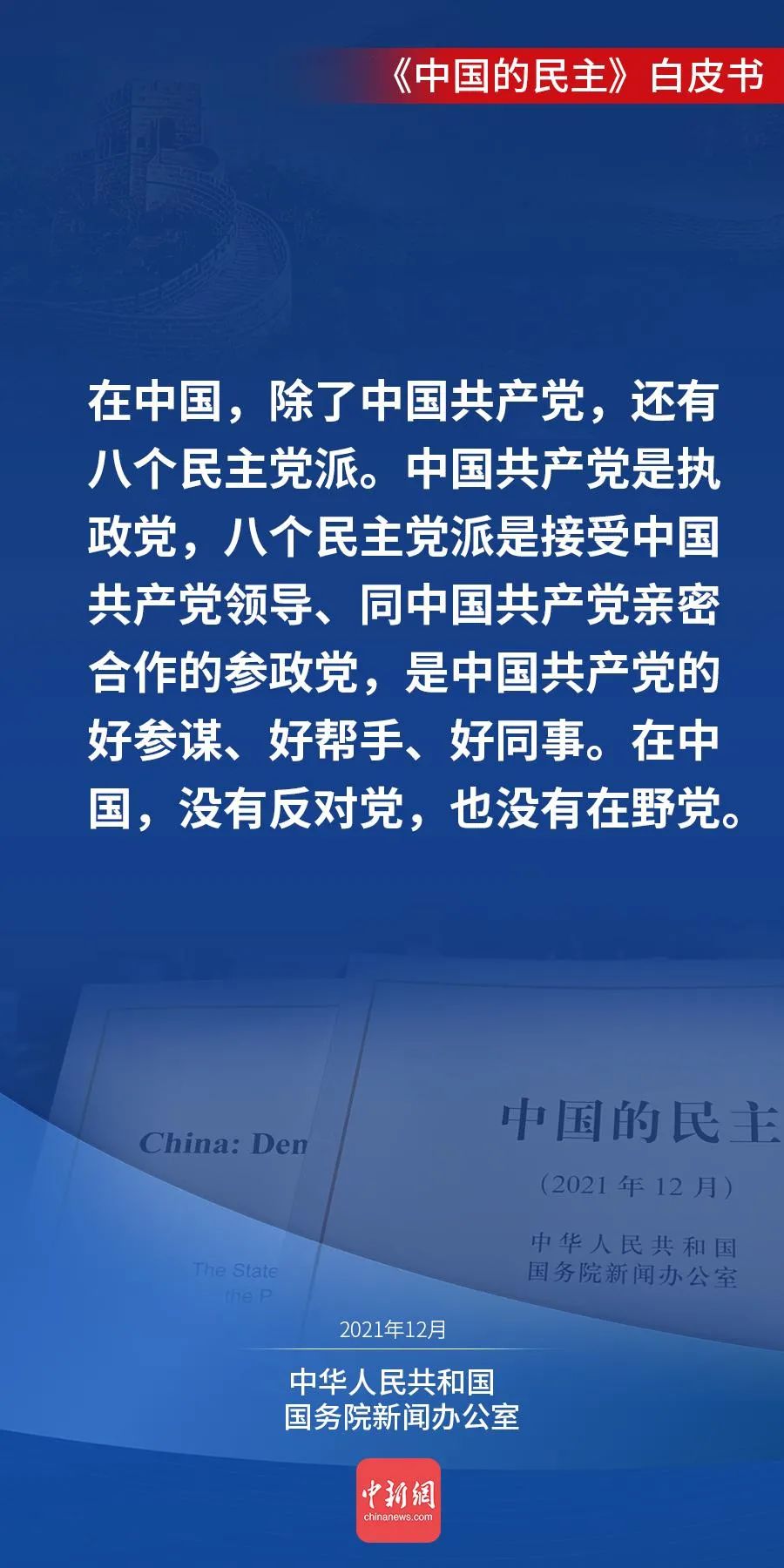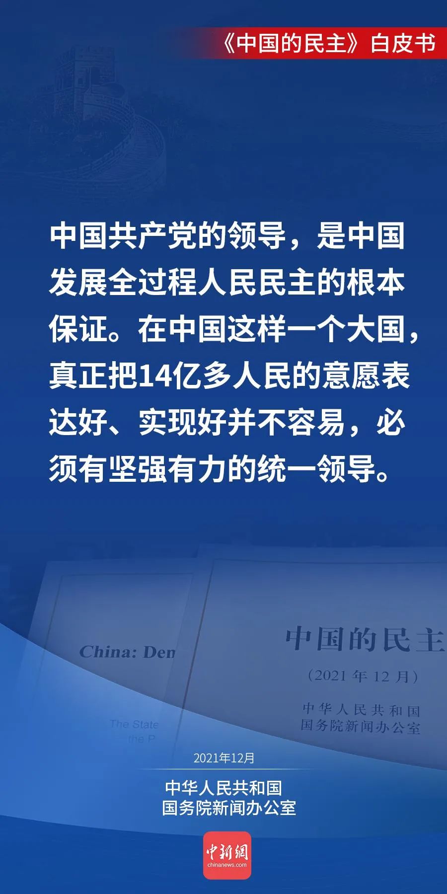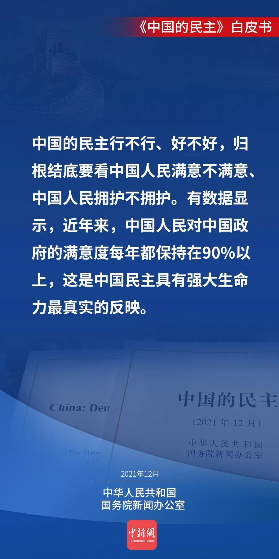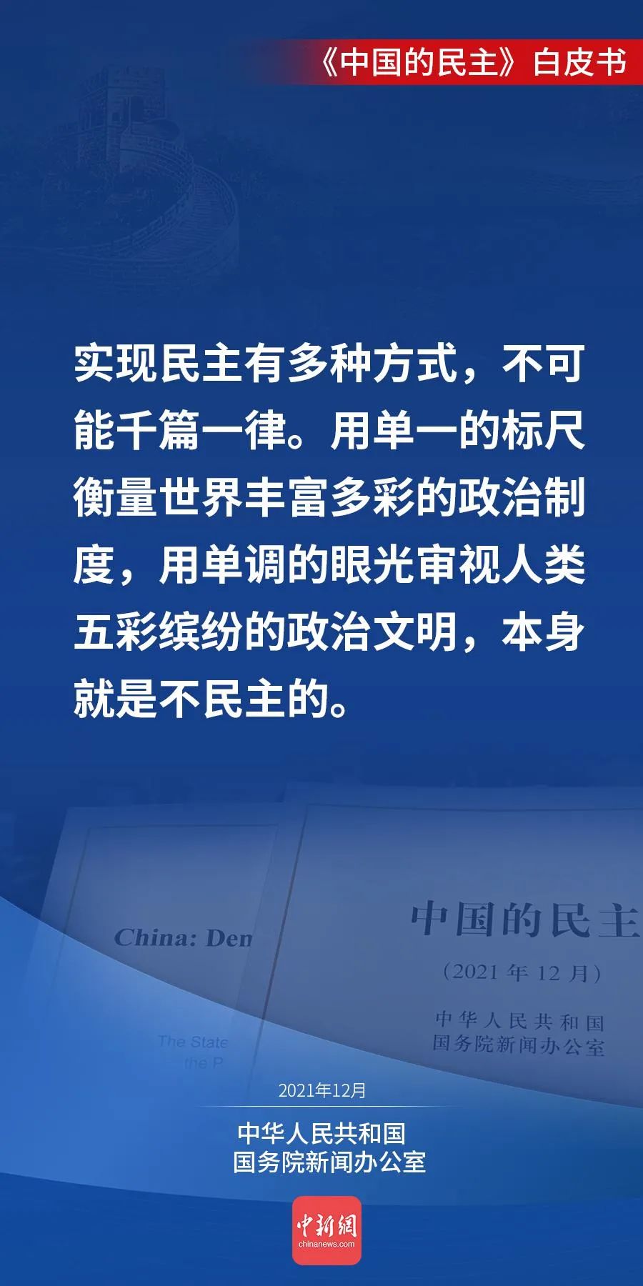 国务院新闻办公室12月4日发表《中国的民主》白皮书。白皮书说,人民当家作主,是中国民主的初心。今天的中国,人民当家作主的内涵不断丰富、渠道不断拓宽、效能不断提升,中国民主不断向前推进。↓↓↓
