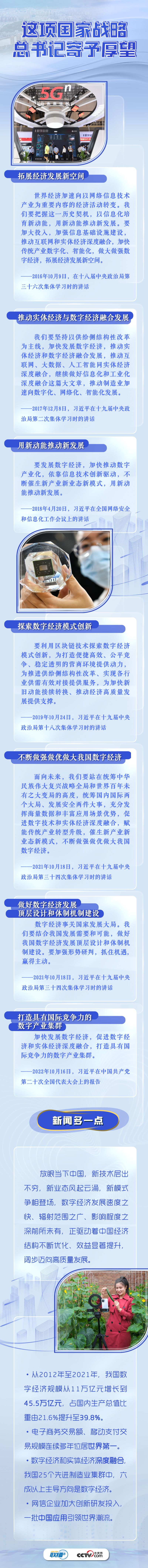 数字经济是我国稳增长促转型的重要引擎,已成为一项国家战略。如何做强做优做大数字经济,推动数字中国建设迈上新的台阶?数字经济能够为构筑国家竞争新优势起到哪些作用?央视网《联播+》梳理习近平总书记相关重要论述,和网友共同学习思考。