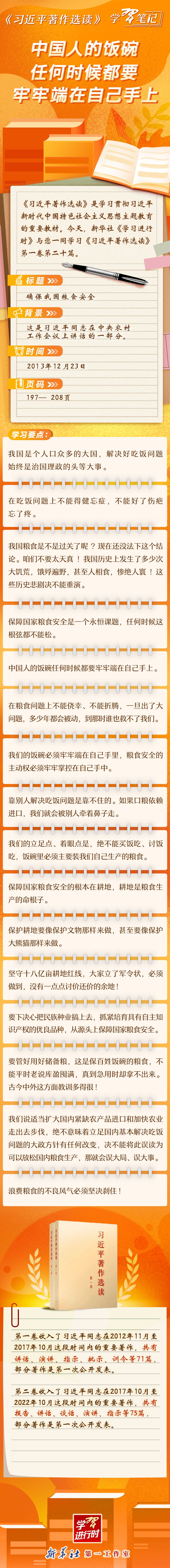 《习近平著作选读》学习笔记:中国人的饭碗任何时候都要牢牢端在自己手上