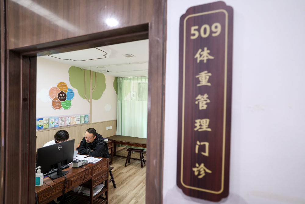 2025年3月17日,居民在杭州市拱墅区文晖街道社区卫生服务中心体重管理门诊就诊。近一年来,浙江省杭州市各级医院积极响应“体重管理年”号召,逐步开设体重管理门诊,倡导并推广文明健康的生活方式,提升市民体重管理意识与技能。