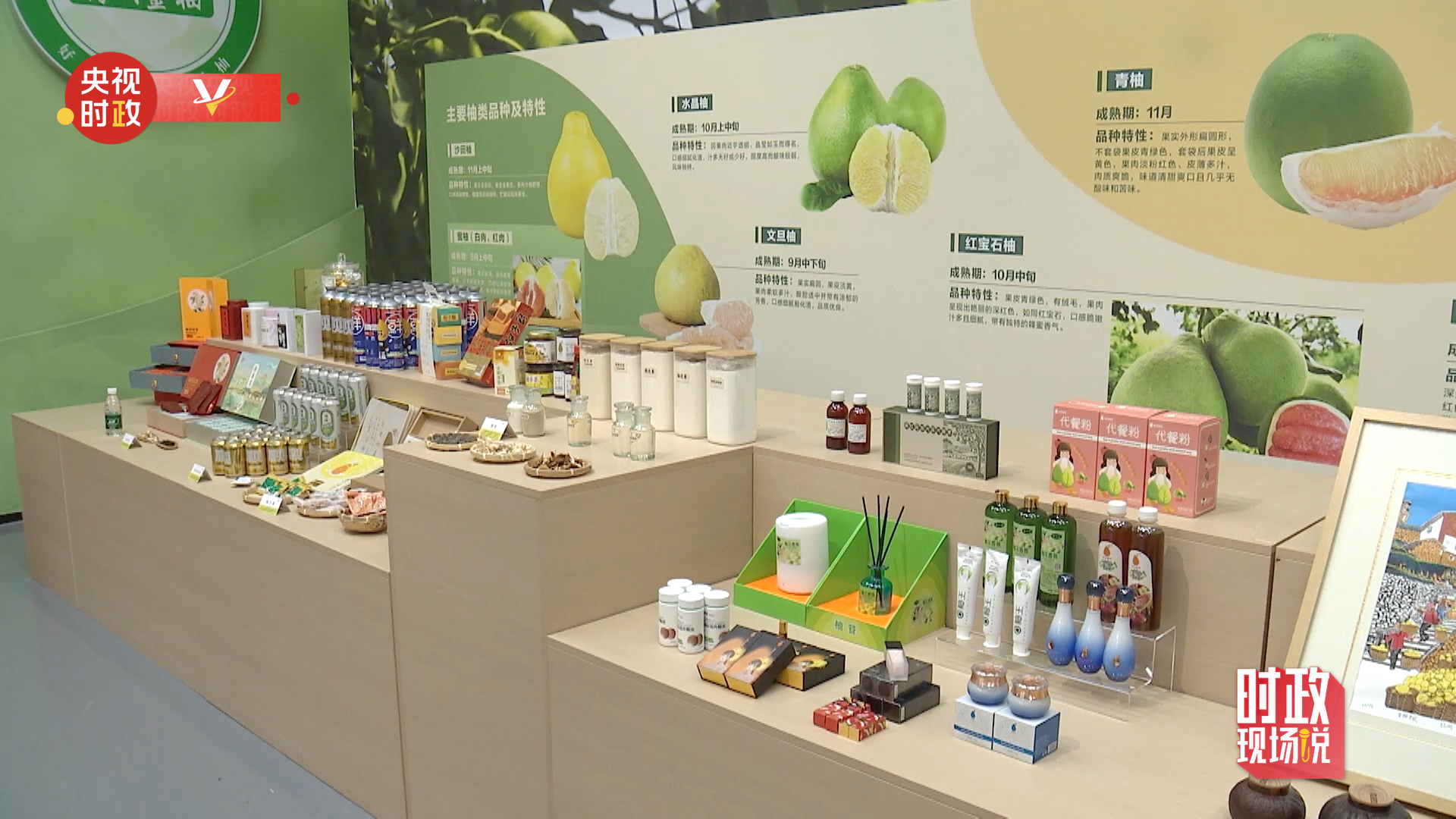 基地内的金柚科技智慧展厅陈列着柚子护肤品、饮料、文创等产品,浓缩着当地多年来在种植标准化、产业链条化、销售多元化等方面蓄势发力,推动品质做优、品牌做大的生动实践。