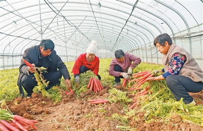 在河南汝阳县柏树镇,返乡创业的“田秀才”成立专业合作社,种植水果萝卜获得丰收。 |