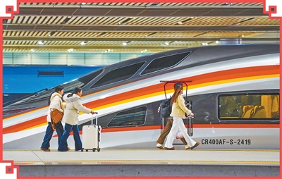 “在北京当保安10年了,以前回家绿皮车‘咣当’一天,如今高铁直达,感觉家是越来越近了!”张喜民今年特意坐高铁回家过年。